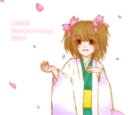 清心尼さまー 髪留めと胸元の紐飾り(?)は千代子ちゃんと同じもの(千代子ちゃんは半分に分けて頭の左右につけている)で、双舞鶴紋の広がった羽をイメージしてます ところで双舞鶴(そうぶかく)紋て呼びかたつい最近知ったのですが格好良すぎる…